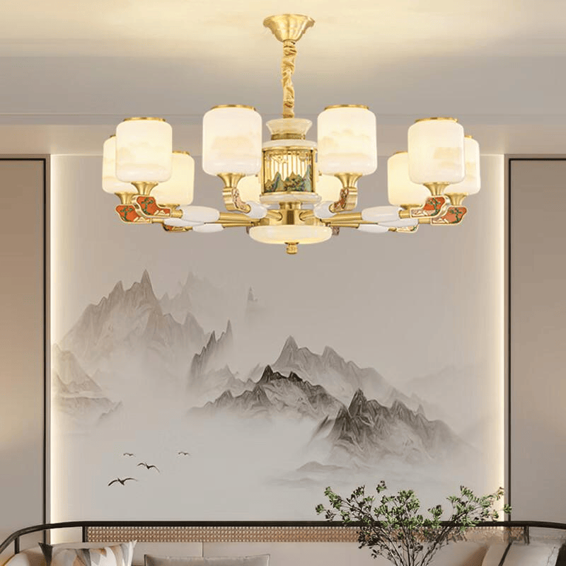 江山图韵,意境深远:吊灯以江山主题的立体雕刻为设计灵感,象征着我国的幅员辽阔和国家的繁荣昌盛。这不仅仅是一件灯具,更是一种文化的传承和艺术的展现,让人在繁杂的都市中也能找到一份宁静和自我。